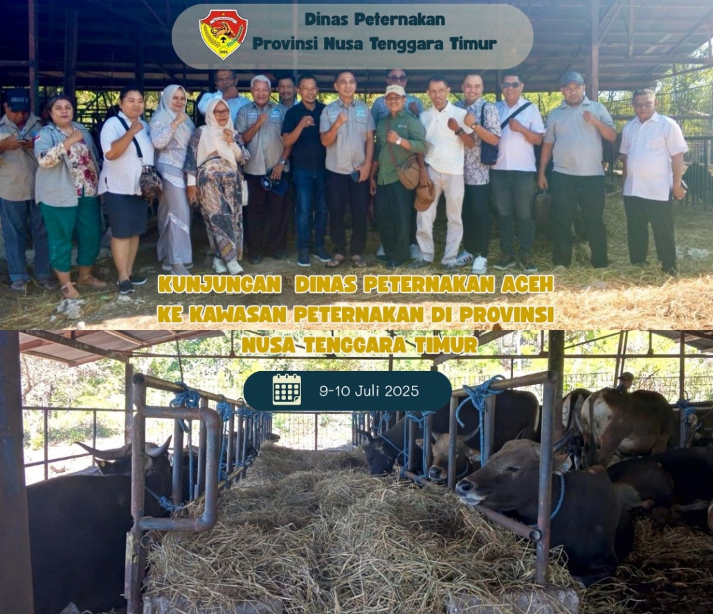 Kupang, 14 Juli 2025 — Dalam upaya meningkatkan wawasan, pengetahuan teknis, serta penguatan jejaring antar Provinsi, Dinas Peternakan Provinsi Aceh melakukan kunjungan kerja ke beberapa kawasan peternakan di Provinsi Nusa Tenggara Timur pada tanggal 09 – 10 Juli 2025. Kegiatan ini difasilitasi langsung oleh Dinas Peternakan Provinsi NTT sebagai bentuk sinergi lintas wilayah dalam pengembangan kawasan peternakan terpadu berbasis potensi lokal.